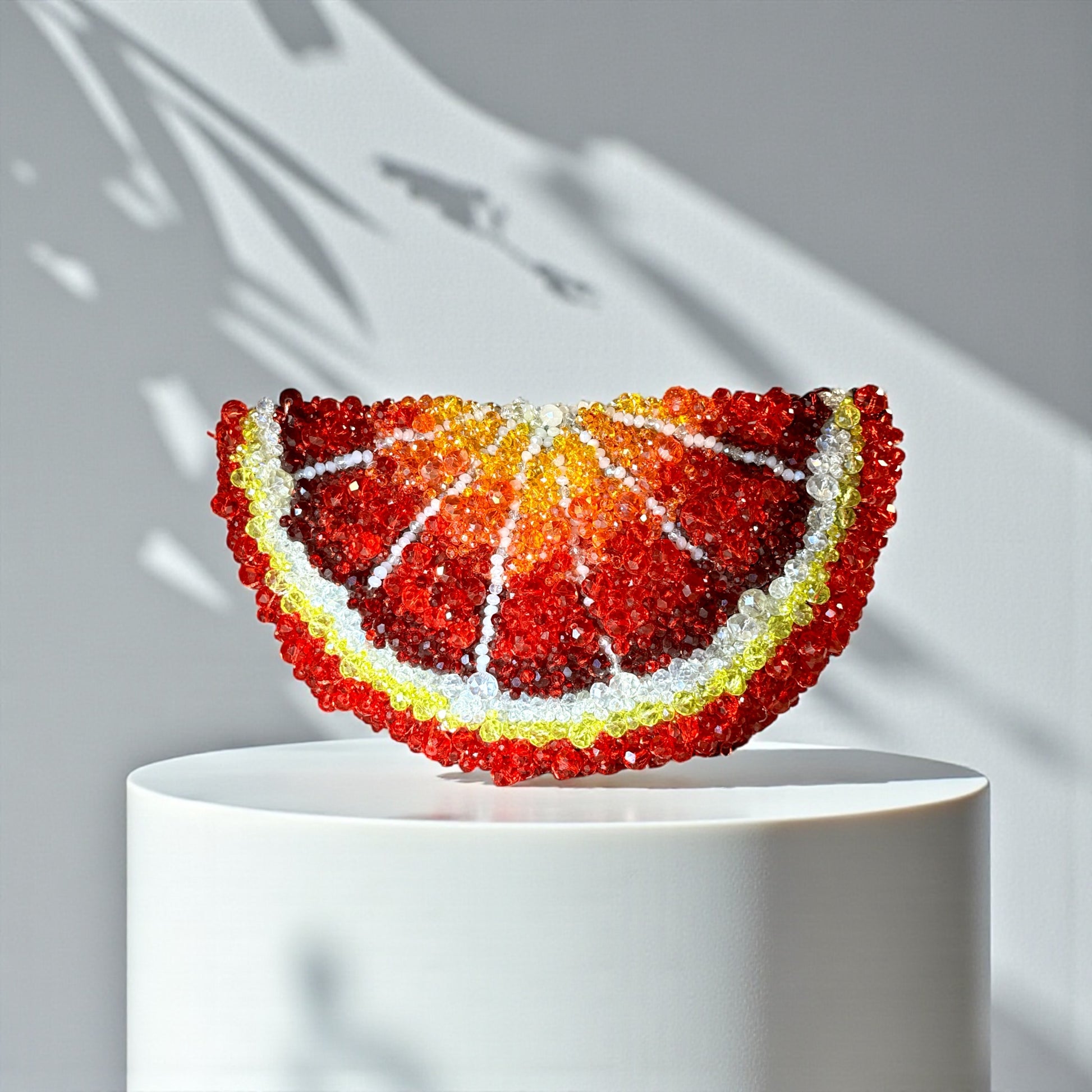 ارتقِ بأناقتك مع حقيبتنا البرتقالية الفاخرة. مصنوعة يدويًا من أحجار كريمة وكريستالات فاخرة، تُضفي هذه الحقيبة لمسةً من الفخامة وتُكمل أي إطلالة. دلل نفسك بأعلى جودة من الخامات والحرفية، واستمتع بلمسة من الأناقة كل يوم.