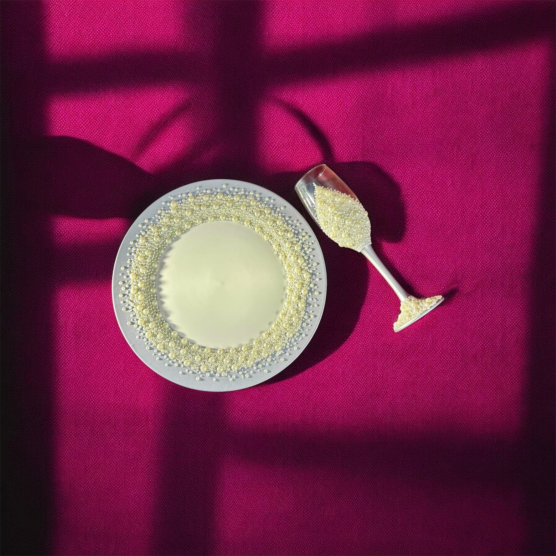 Pencil Wine Glass Ceramic Tray A beautifully handcrafted doodh pilai set adorned with elegant pearl detailing for a graceful, traditional look. Perfect for adding timeless charm to wedding rituals and special celebrations.